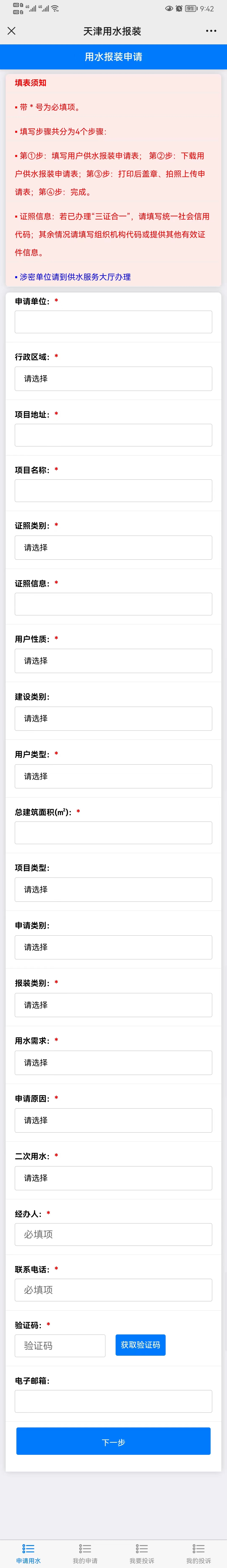 申請人點擊:用水報裝申請如圖所示:
