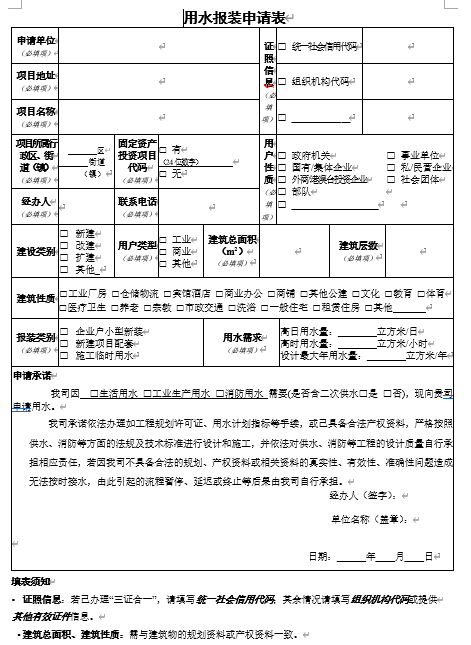 用水報裝申請表:下載