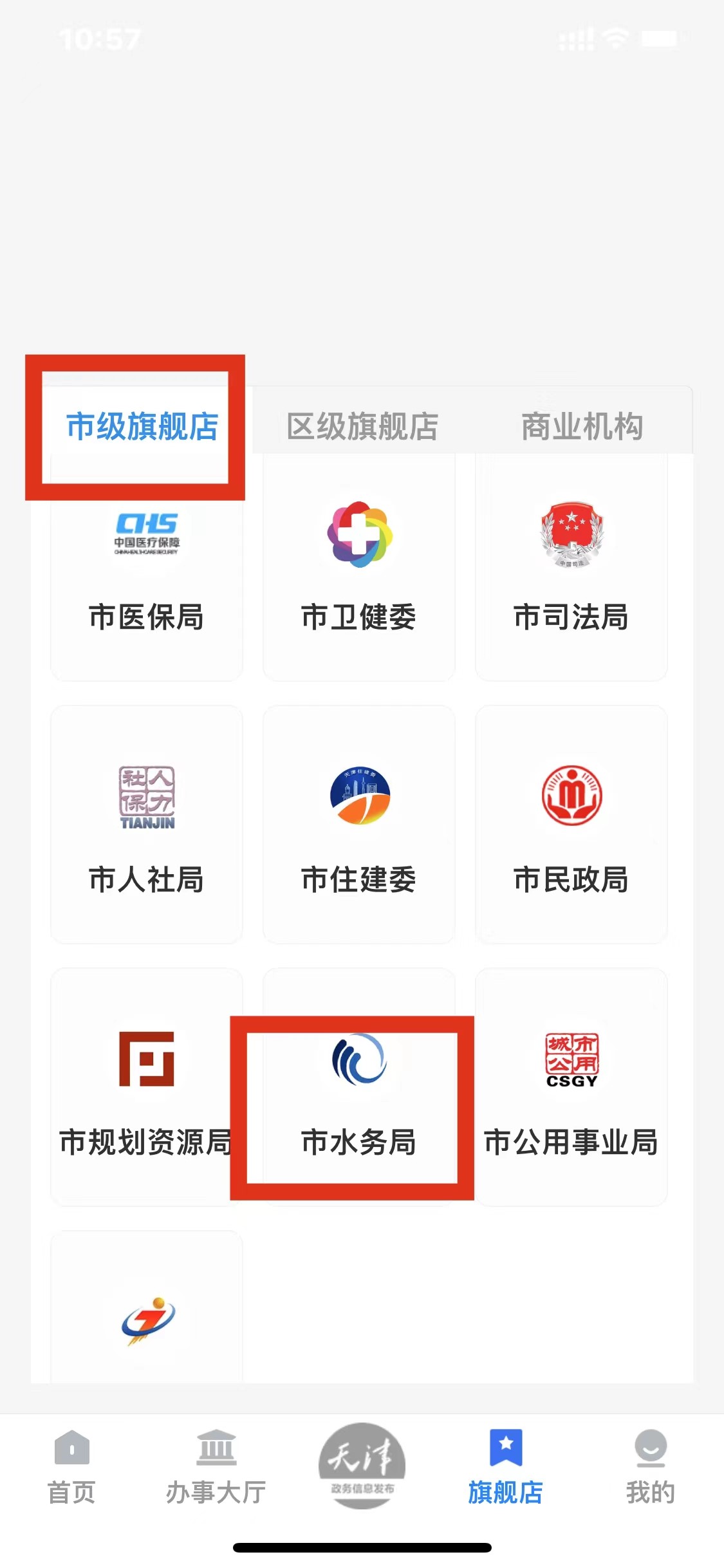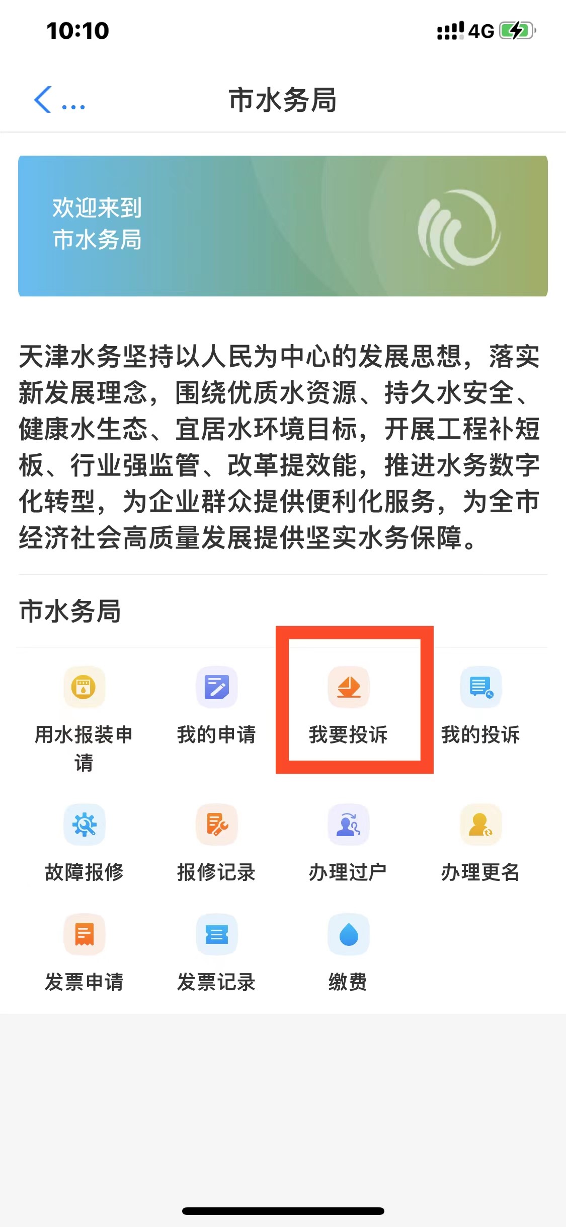• 首頁(yè)菜單底部,選擇旗艦店->市級(jí)旗艦店->市水務(wù)局->我要投訴